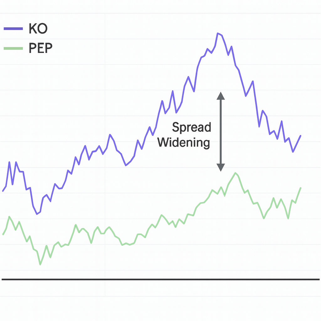 Coca-Cola (KO) and PepsiCo (PEP) are competitors and often move in sync. A Stat Arb model might show that the spread between KO and PEP is historically tight – let's say within $1.50 of each other.