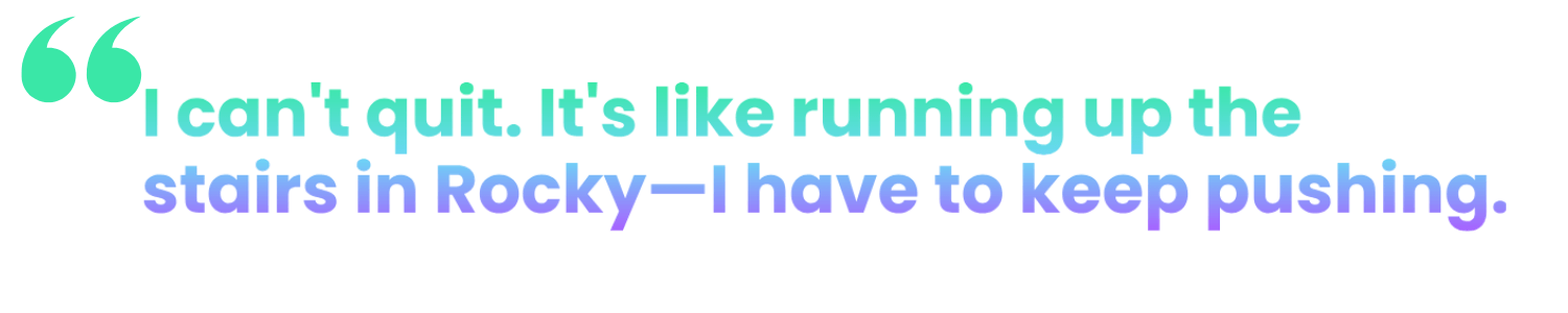 I just can’t quit. It’s not in me. I started when I was 15 and spent three or four years constantly losing money. But I kept going because I knew I had the skills. Now, I want to see how far I can go. That’s what keeps me motivated. And, of course, when you have a good trade, your motivation shoots up. It’s like running up the stairs in Rocky—I can’t stop.