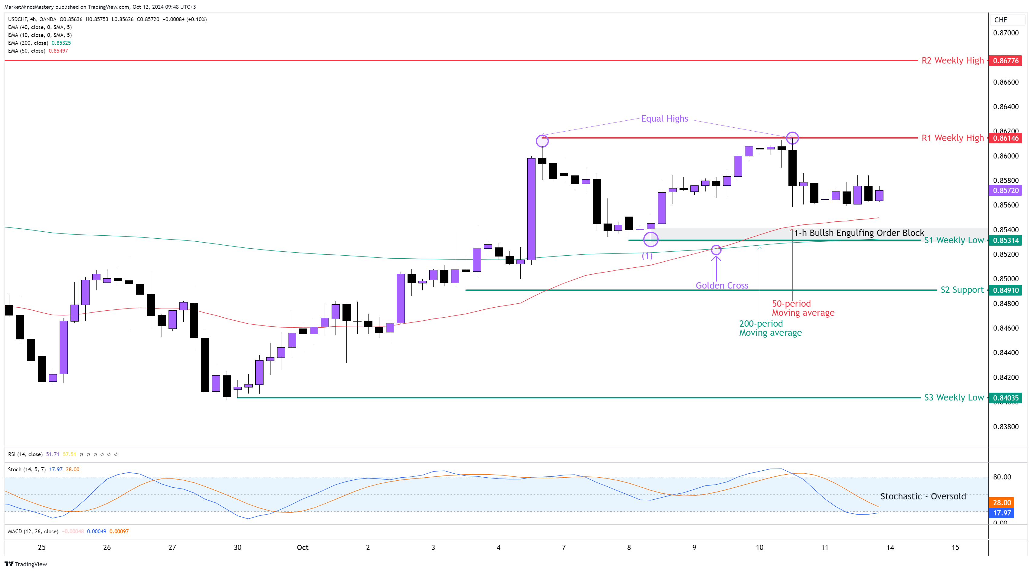 Öte yandan, fiyat reddedilir ve aşağı doğru hareket ederse, ilk destek alanı S1, bir önceki haftanın en düşük seviyesi olan yaklaşık 0,85314 olacaktır. Bu fiyat seviyesi, geçen hafta bir Bullish Engulfing Order Block oluşturulduğu için önemli kabul edilir ve fiyat için ek bir destek faktörü olarak hareket edebilir. Fiyat S1 desteğini aşarsa, döviz yükseliş trendi sona erecek ve Çift Tepe Dönüş Formasyonu teyit edilecektir. Fiyat aşağı doğru hareket etmeye devam ederse, bir sonraki destek alanı olan S2 0,84910 civarında olacaktır. Fiyat S2'yi aşar ve düşmeye devam ederse, bir sonraki destek alanı olan S3 0.84035'te olacaktır.