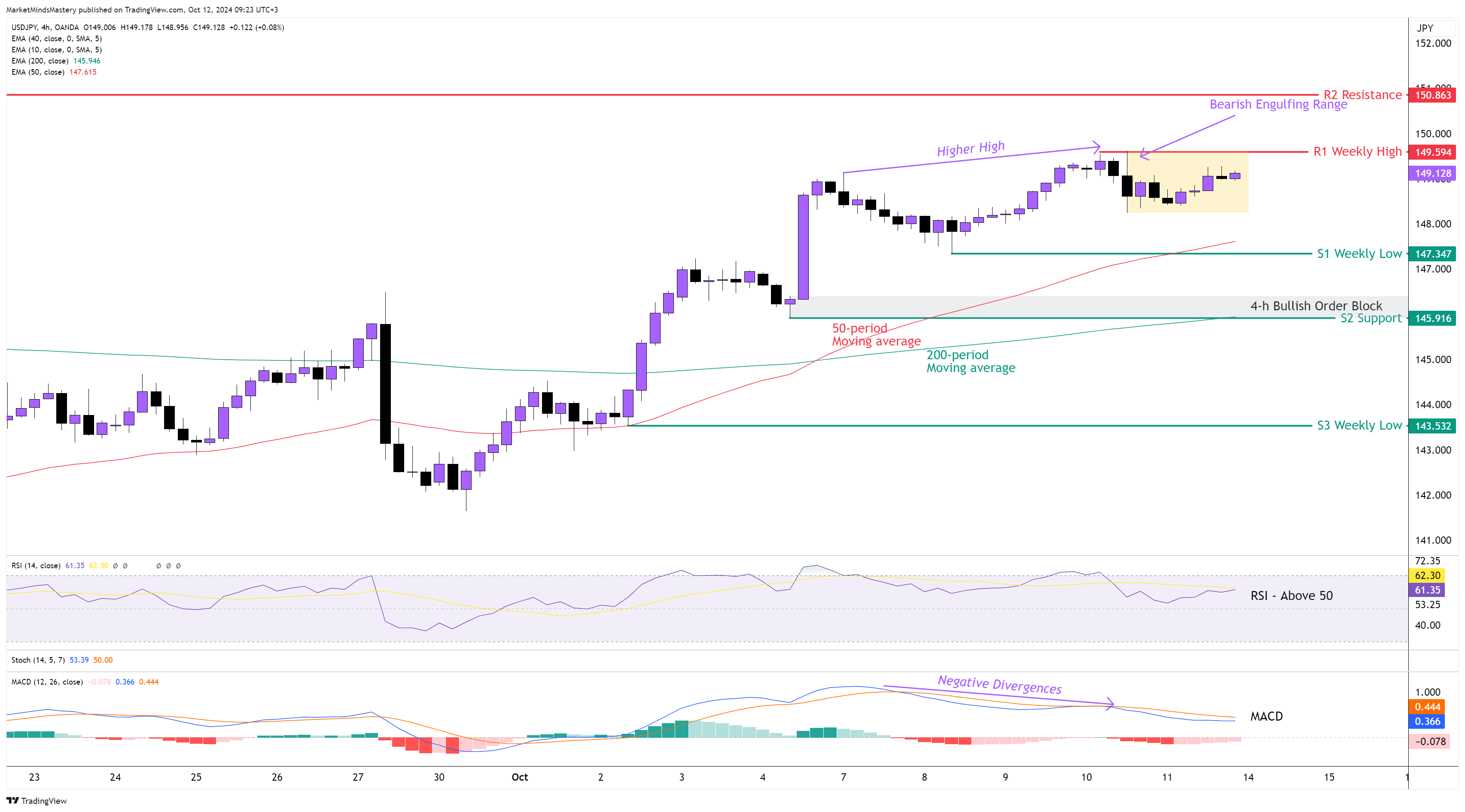 Tersine, fiyat reddedilir ve aşağı doğru hareket ederse, ilk destek alanı olan S1, bir önceki haftanın en düşük seviyesi olan 147.347'de olacaktır. Fiyat S1 desteğini aşar ve aşağı doğru hareket etmeye devam ederse, bir sonraki destek alanı olan S2 145.916 civarında olacaktır. Bu, bir Bullish Order Block ve 200 dönem hareketli ortalamadan oluştuğu için önemli bir destek seviyesidir.