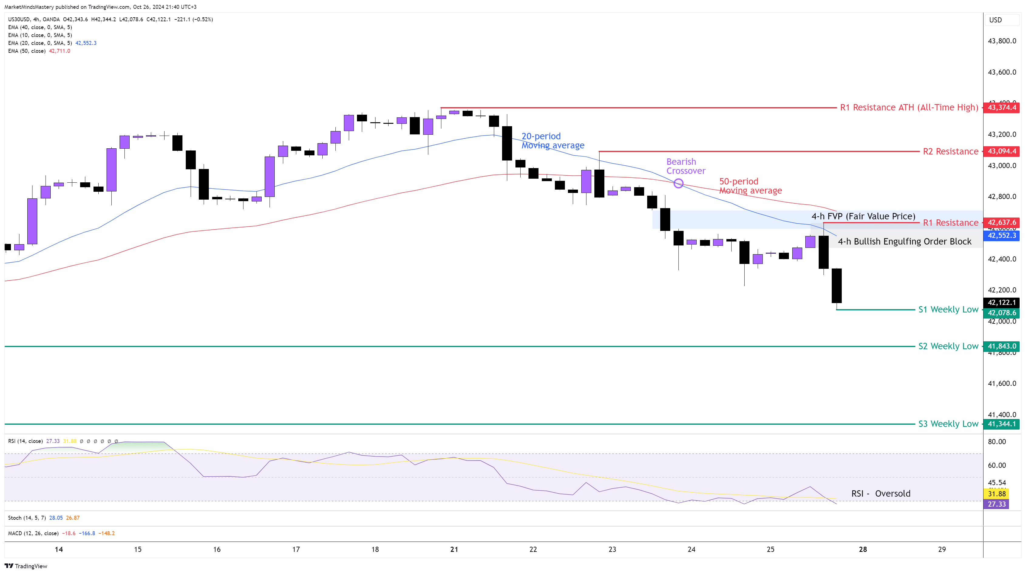 Geçen hafta, US 30 üç büyük ABD Endeksinin en zayıfıydı ve haftalık grafik fiyatı bir Ayı Marubozu mumuyla sona erdi.