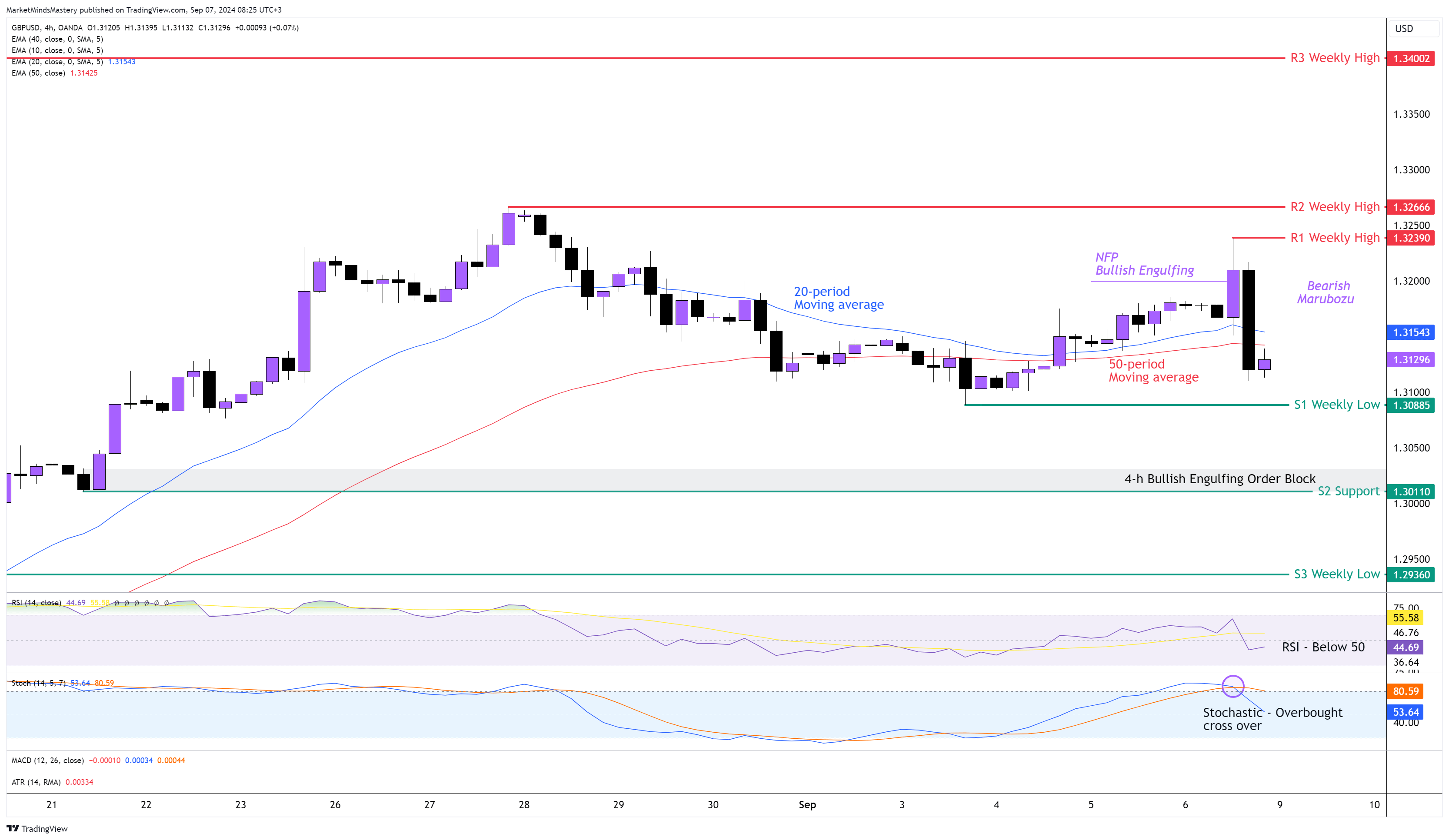 Önceki haftaki piyasa hareketinin ardından, haftalık grafikte GBPUSD fiyatı Doji handle olarak sona erdi ve düşük bir tepe ve düşük bir dip gösterdi. Haftalık grafiğe göre ana trend, Salınım Analizi ve piyasa yapısına dayalı bir yükseliş trendi. 4 saatlik grafikte, geçtiğimiz Cuma günü fiyat, geçen haftaki Piyasa Görünümünde işaret ettiğimiz Yutan Ayı Emir Bloğuna ulaştı ve NFP açıklamasının ardından reddedildi. Genellikle, NFP duyurusundan önceki hafta, ana pariteler yatay veya minimum fiyat hareketleri aralığında hareket etme eğilimindedir. GBPUSD'deki küçük hareket aralığının ana nedeni budur. 4 saatlik grafikte, 20 periyot, 50 periyotluk hareketli ortalamanın üzerinde ve bunun yükseliş etkileri var. Bununla birlikte, Osilatörler fiyat hareketine daha hızlı tepki verdikleri için farklı bir resim gösteriyor. RSI 50'nin altında ve Stochastic Osilatörü Aşırı Alım durumundayken bir Ayı Çaprazlaması oluşturdu. Bu ikisinin düşüş yönünde etkileri var. Pazartesi gününden itibaren, fiyat Ayı Marubozu yönünü takip eder ve aşağı doğru hareket ederse, ilk destek alanı olan S1, önceki haftanın en düşük seviyesi olan 1,30885 civarında olacak. Fiyatın S1'e nüfuz etmesi ve düşmeye devam etmesi durumunda, bir sonraki destek alanı olan S2, yuvarlak bir sayı olan ve GBPUSD çifti için önemli bir fiyat seviyesi olarak kabul edilen 1.30000, civarındaki alan olacaktır. Birkaç hafta önce, bir Bullish Engulfing Order Block oluşturuldu. Dolayısıyla, piyasa katılımcıları bunu önemli bir değer alanı olarak görebilir. Daha fazla düşüş, bir sonraki önemli destek alanının 1,29360 civarında olmasıyla sonuçlanacaktır.
