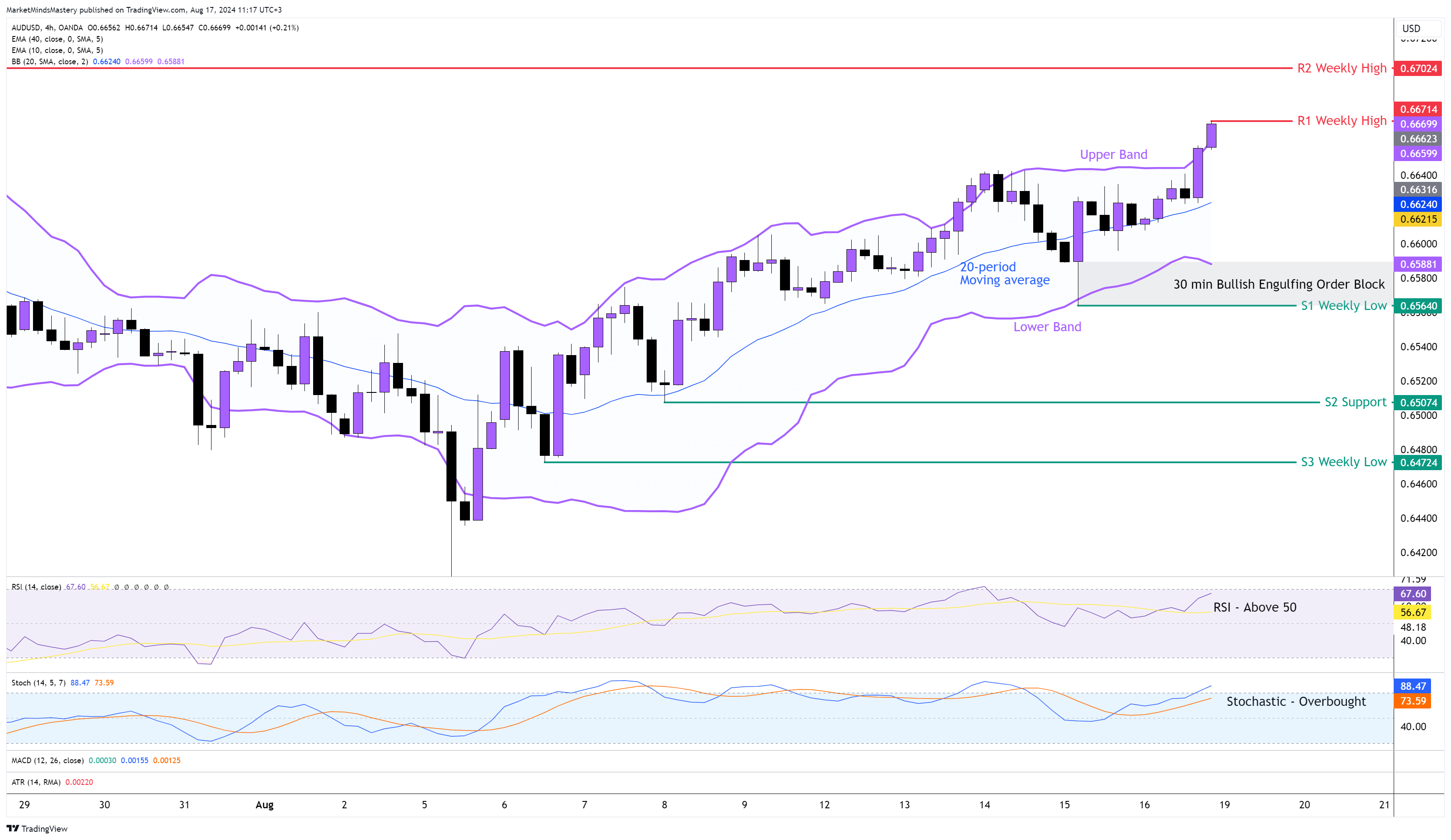 另一方面,如果价格被拒绝并下行,则第一个支撑区域 S1 将是上一周的低点,即 0.65640 附近。上周四,市场在30 分钟图表上创建了一个看涨吞没订单区,这可能是价格的一个额外支撑因素。如果价格击穿 S1 并进一步下跌,下一个支撑区域 S2 将是 0.65074。