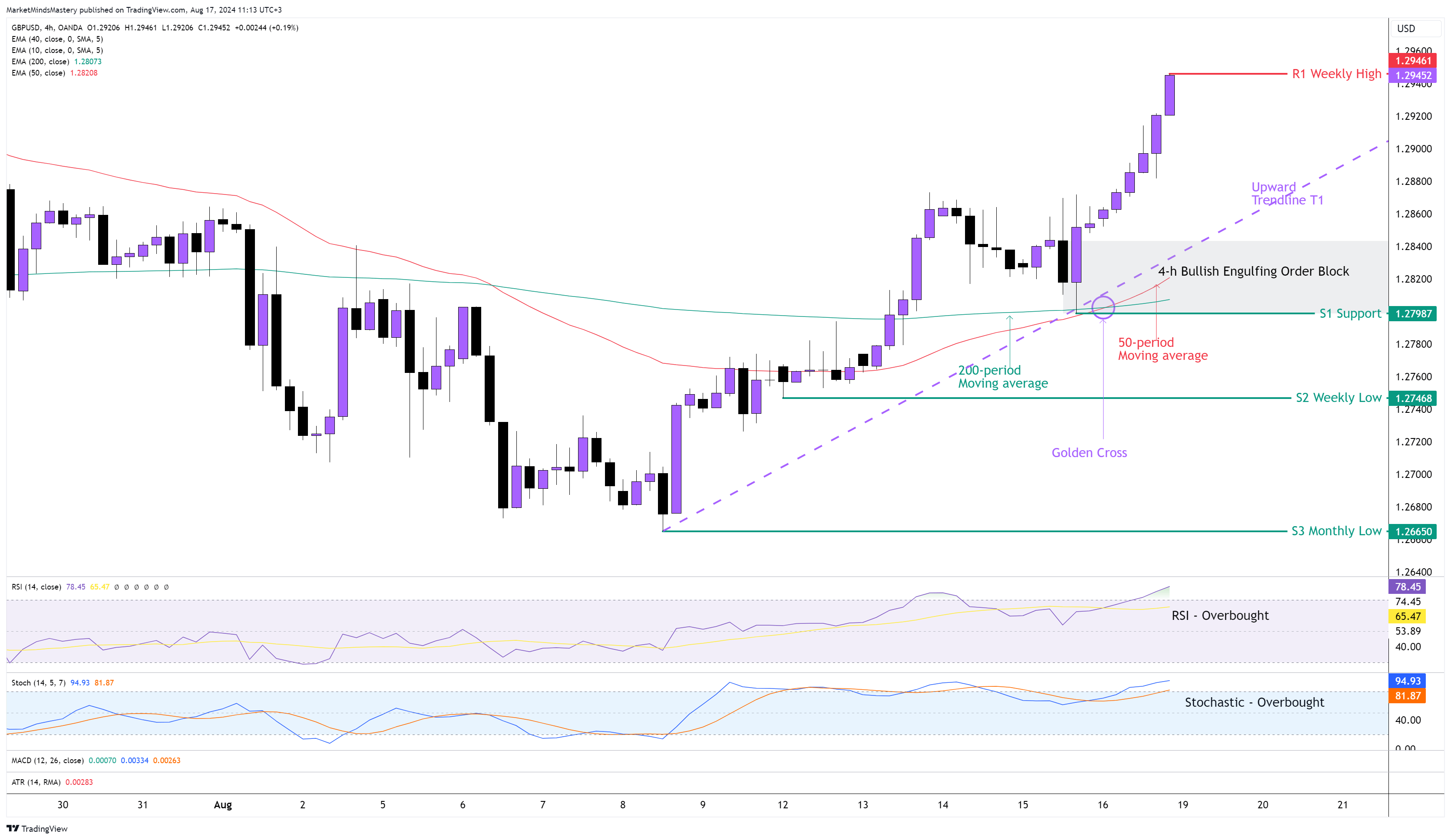 另一方面,如果价格下跌并向下移动,第一个支撑区域 S1 将在 1.09496 附近。如果价格击穿 S1 并继续走低,下一个支撑区域 S2 将是前一周的低点,约 1.09102。上图中标注的看涨吞没指令块位于 1.0920 附近,它可以成为任何价格下跌的额外支撑因素。进一步下行将找到下一个支撑位 S3,即 1.08814 附近,该位置也与 200-strong>移动平均线共存。