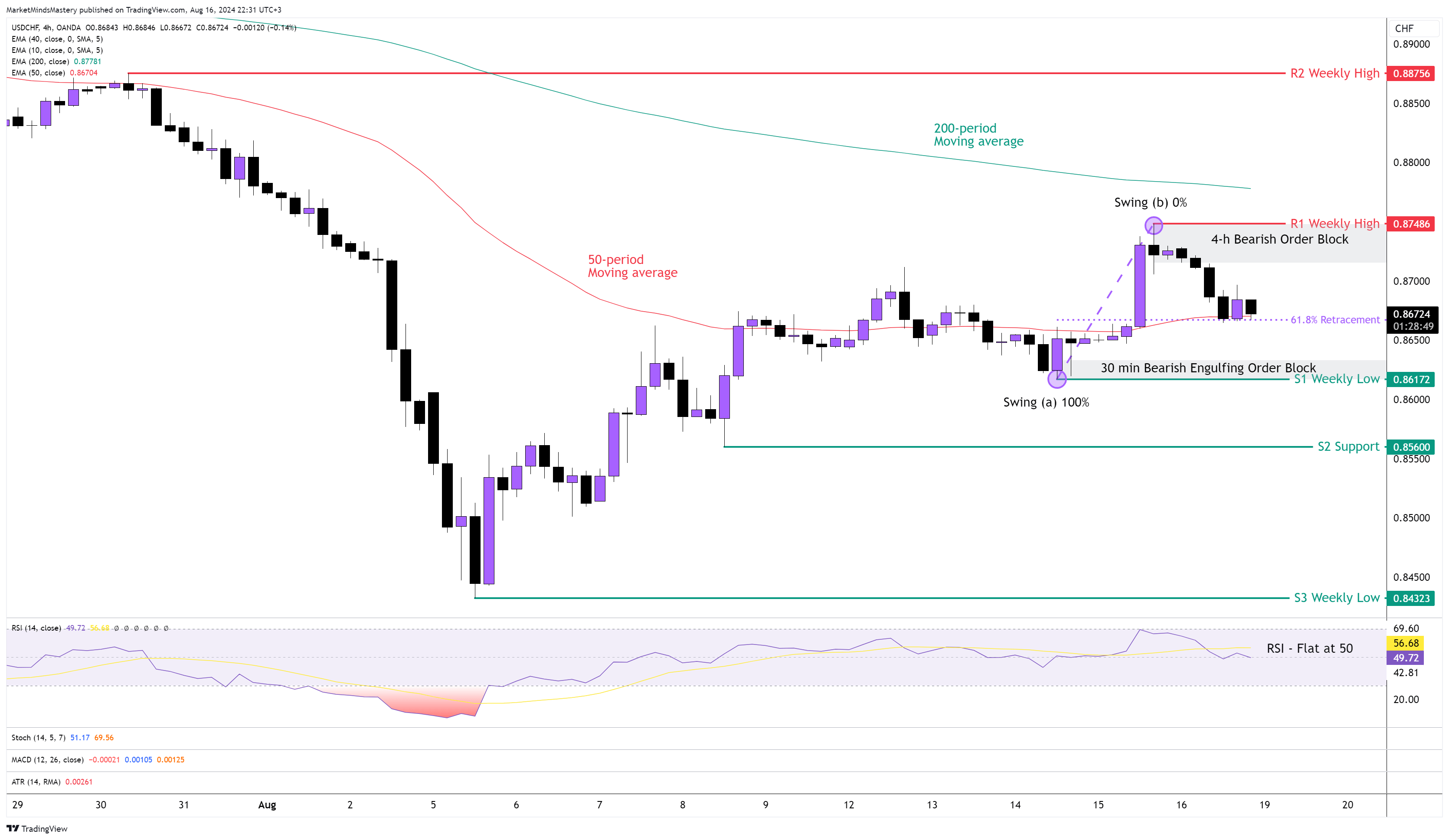 相反,如果价格被拒绝并向下移动,第一个支撑区域将是 39687 美元。该价位由静态支撑位 S1、200 期移动平均线、4 小时看涨订单区块和有效上升趋势线 T1组成。如果价格没有持续突破 S1,下一个支撑区域 S2 将是前一周的低点,约 39241 美元。