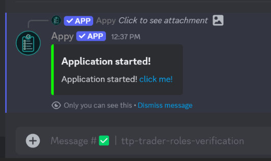 选择身份后,Appy 会发送一条消息,提示您的申请已经开始,您可以点击 “click me!” 进入申请页面。