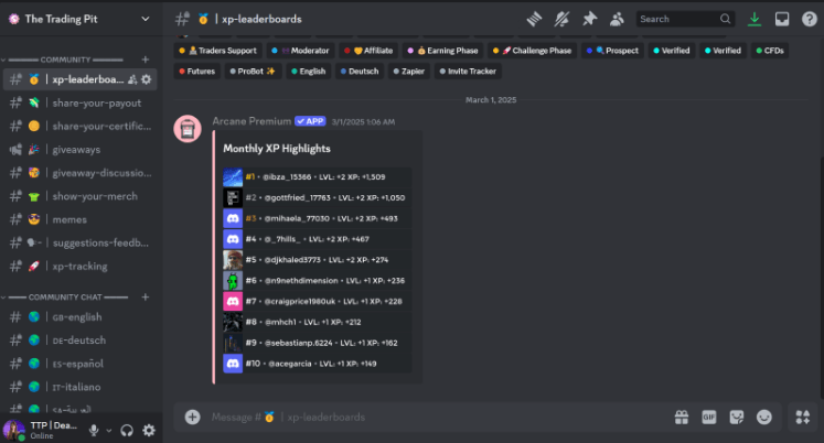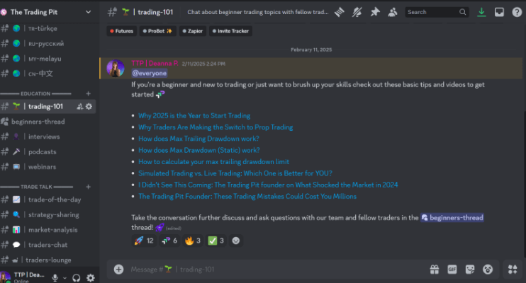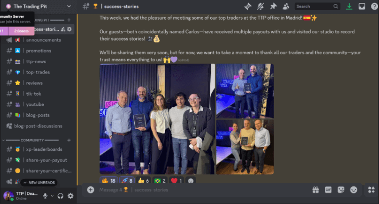 TTP 的 Discord 社区是协作、学习和分享的最佳场所。我们精心设计的频道旨在提供资讯,营造一个积极互动与合作的环境。加入 TTP Discord,成长为一名更出色的交易者,成为这个独一无二社区的一份子!
