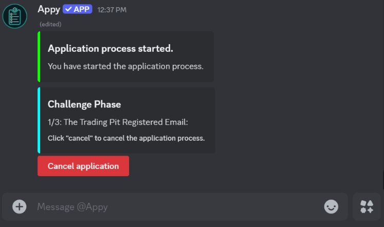 提交回答后,Appy 会告诉您 “您的申请已提交”。紧接着,The Trading Pit 的工作人员会验证您的身份。验证成功后,您将获得全部频道的使用权限——Tada!🎉