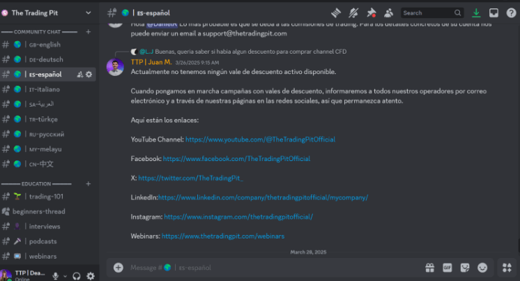 Discord 是一个强大的沟通平台,社区可以通过文字、语音和视频进行交流。在 TTP,我们的服务器专为帮助您与其他 The Trading Pit 交易者建立联系、学习并共同成长而设立的。
